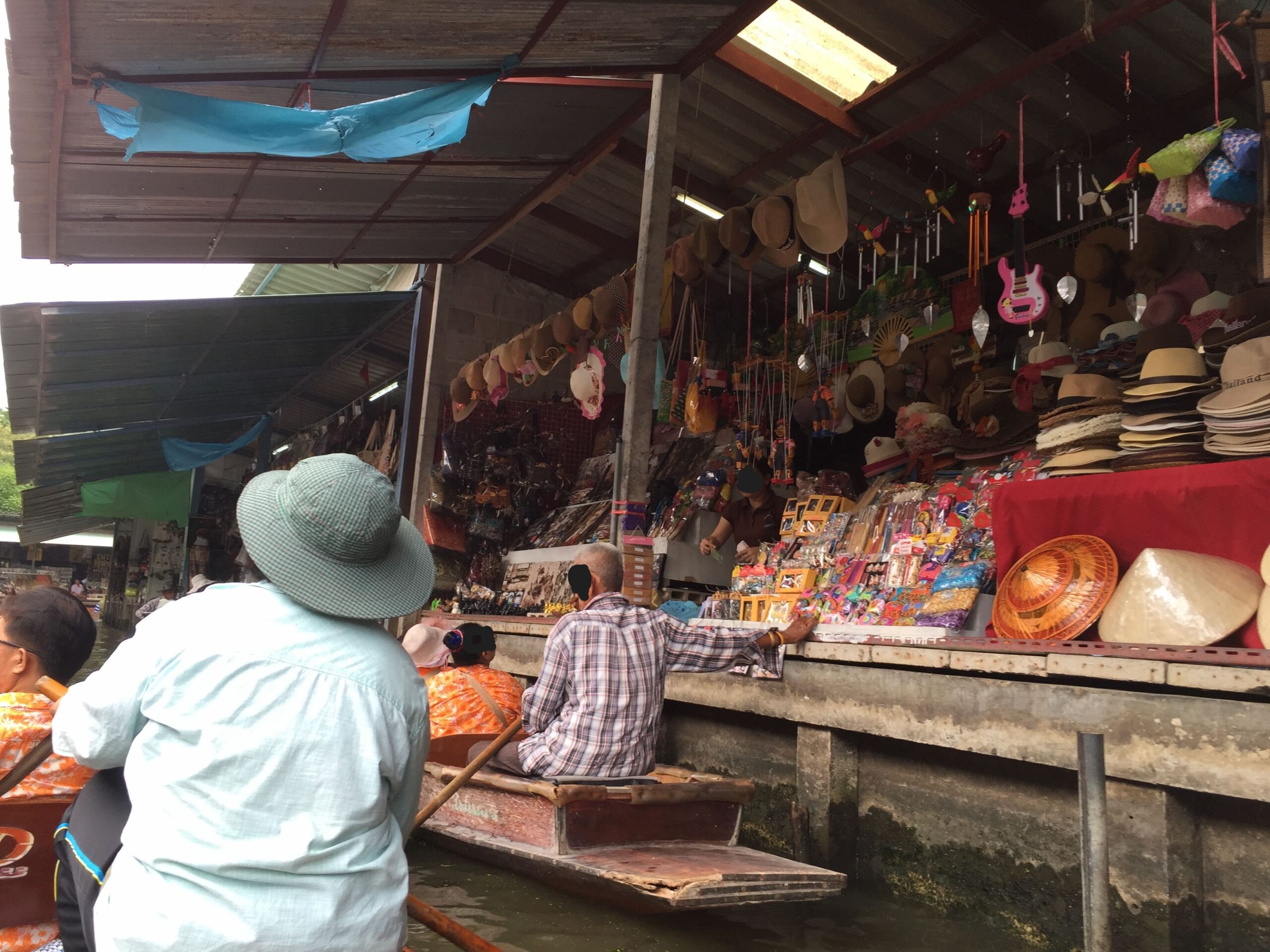 主に観光客でにぎわっている水上マーケットは興味のあるお店によりながらお買い物ができます。観光地プライスな気がしますが、経験としては面白いです。