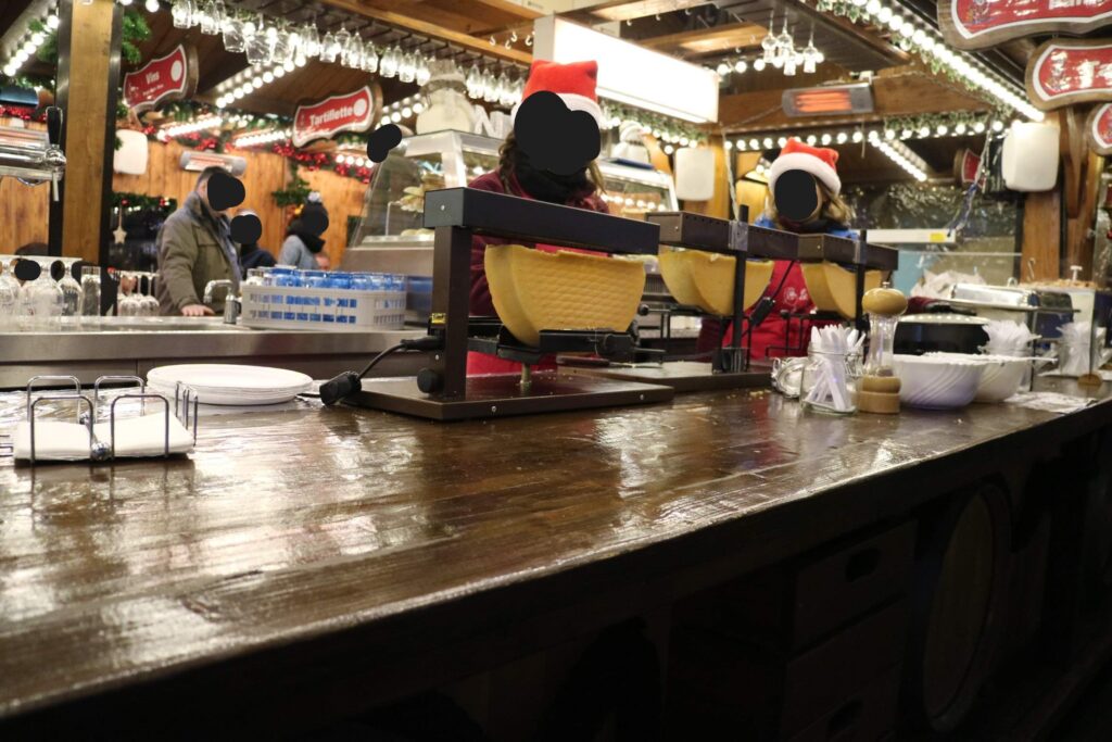夜ご飯はクリスマスマーケット内のラクレットチーズ+ジャガイモを食べました。美味でした!