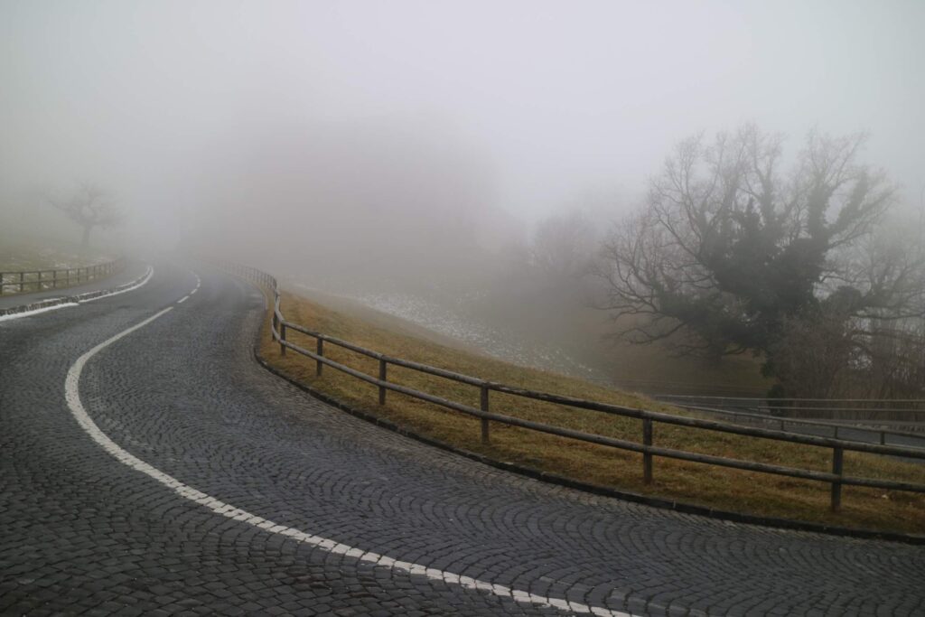 ようやく道路が見えてきて終盤ですが、霧まみれ!!